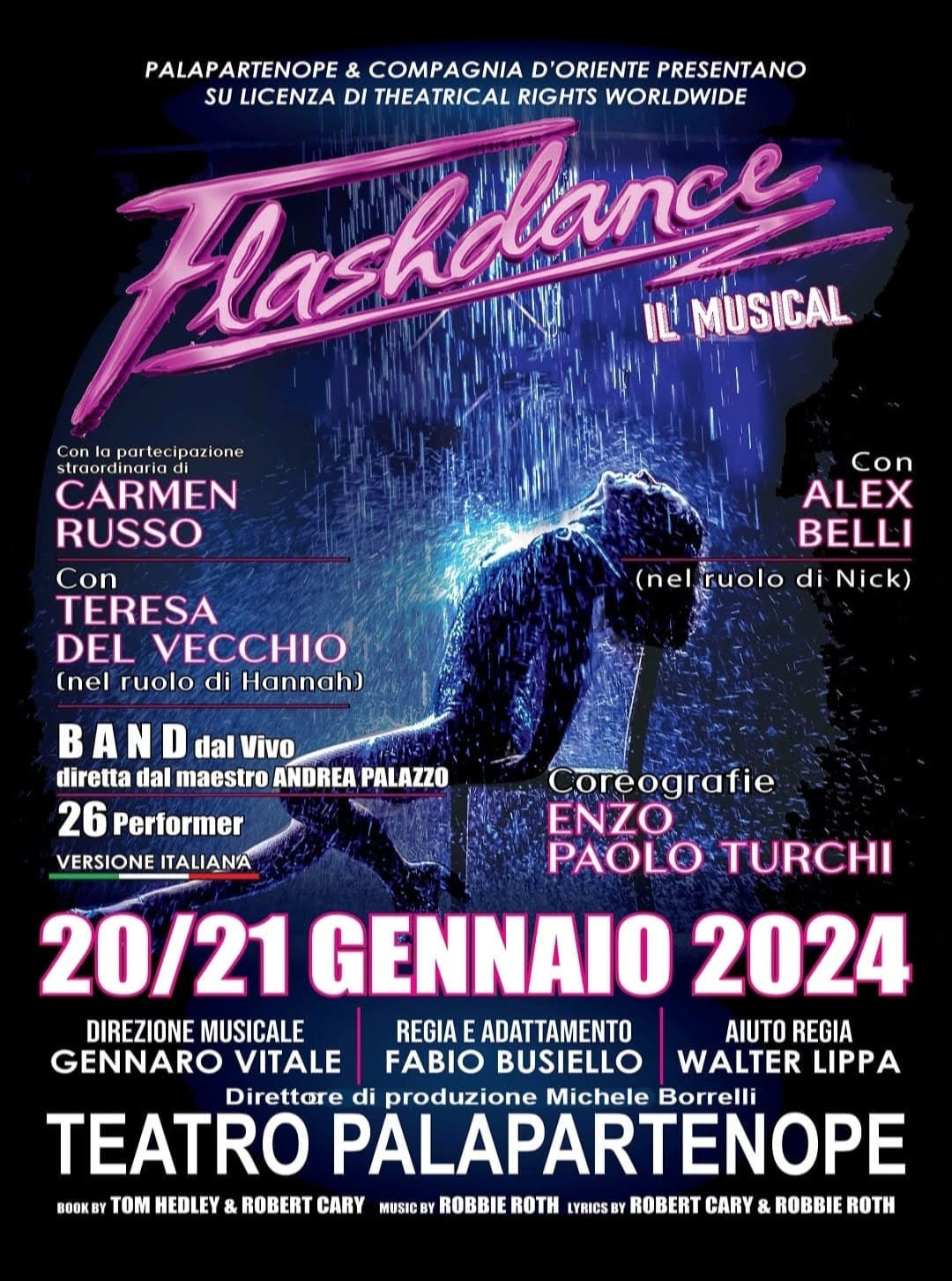 Palapartenope e Compagnia d’Oriente presentano, su licenza di Theatrical Rights Worldwide, la versione italiana del musical “FLASHDANCE”,un allestimento teatrale ineditotratto dalla memorabile pellicola del 1983, per la regia di Fabio Busiello.