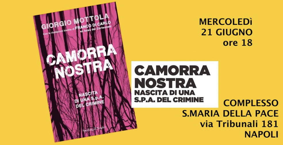 Mercoledì 21 giungo, ore 18, Giorgio Mottola presenterà il suo ultimo lavoro editoriale “Camorra nostra, lasciata diaun Spa del crimine”. Con l’autore sarà presente Giuseppe Borrelli, magistrato, coordinatore della Direzione Distrettuale Antimafia di Napoli. Modera la giornalista Amalia De Simone.