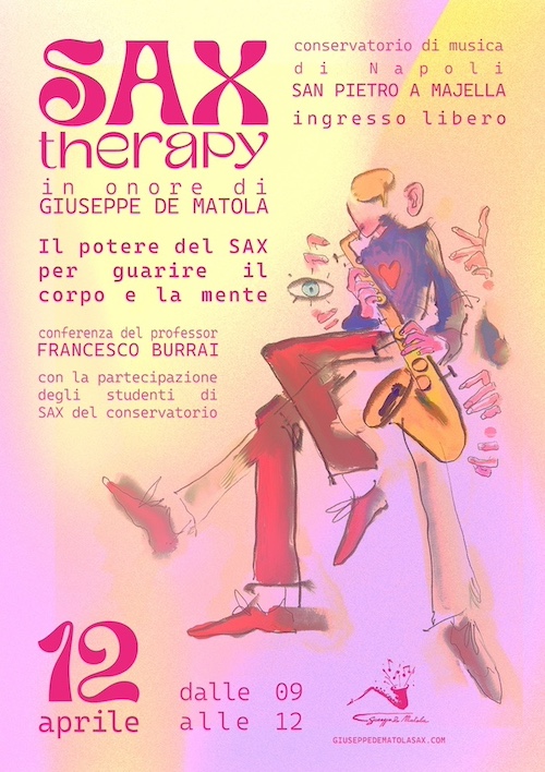 A Napoli, il 12 Aprile, presso il Conservatorio di Musica San Pietro a Majella, si terrà una straordinaria conferenza dedicata all’esplorazione del potenziale terapeutico della musica del sassofono per la salute del corpo e della mente. Dalle ore 9 alle 12 – INGRESSO LIBERO.