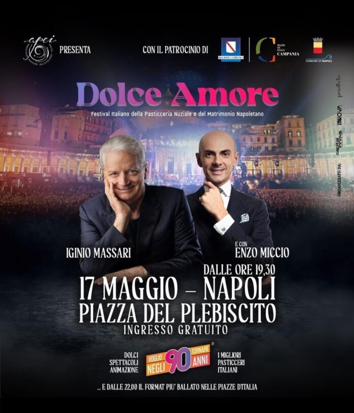 Sarà piazza del Plebiscito il teatro del primo ‘Festival italiano della pasticceria nuziale’, intitolato quest’anno ‘Dolce Amore’, organizzato da Apei (Ambasciatori pasticceri dell’eccellenza italiana) con il patrocinio di Regione Campania e Comune di Napoli.