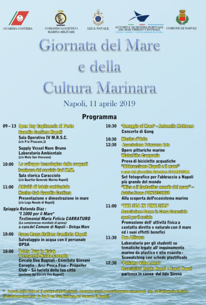 Con il coordinamento a cura della prof. Angela Procaccini, giovedì 11 aprile a Napoli sarà celebrata la Giornata del Mare e della Cultura Marinara.