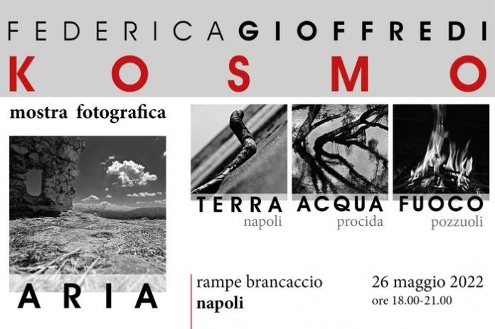 Aria, acqua, terra, fuoco sono le tappe del viaggio visivo dell’artista Federica Gioffredi intitolato Kosmo, curato dalla docente e storico dell’arte Bianca Stranieri. Si parte da Napoli, dove si ritorna, passando per Procida e Pozzuoli.