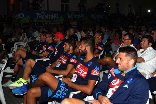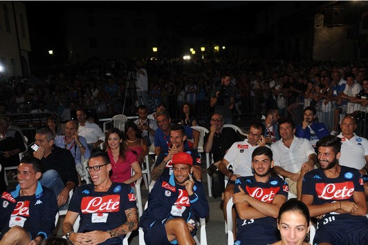Gli artisti del fortunato spettacolo si sono esibiti sul palco nella Piazza di Dimaro, coinvolgendo ed entusiasmando i tifosi con i più famosi sketch diventati ormai un cult nell’immaginario pubblico. Ad assistere alla serata i calciatori del Napoli Hamsik, Insigne, Callejon, David Lopez, Maggio, Rafael, Luperto ed i giovani Allegra, Bifulco e Romano.