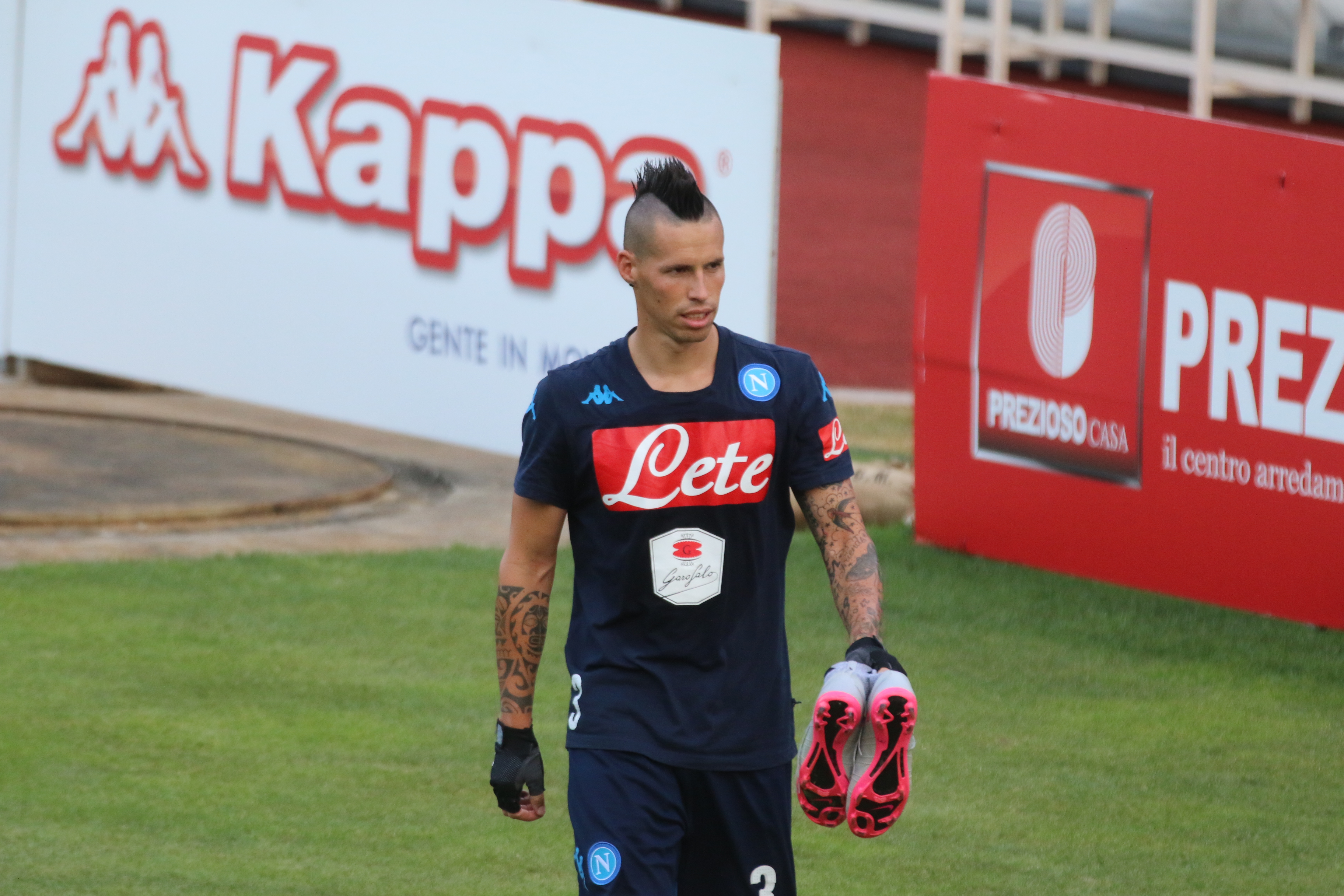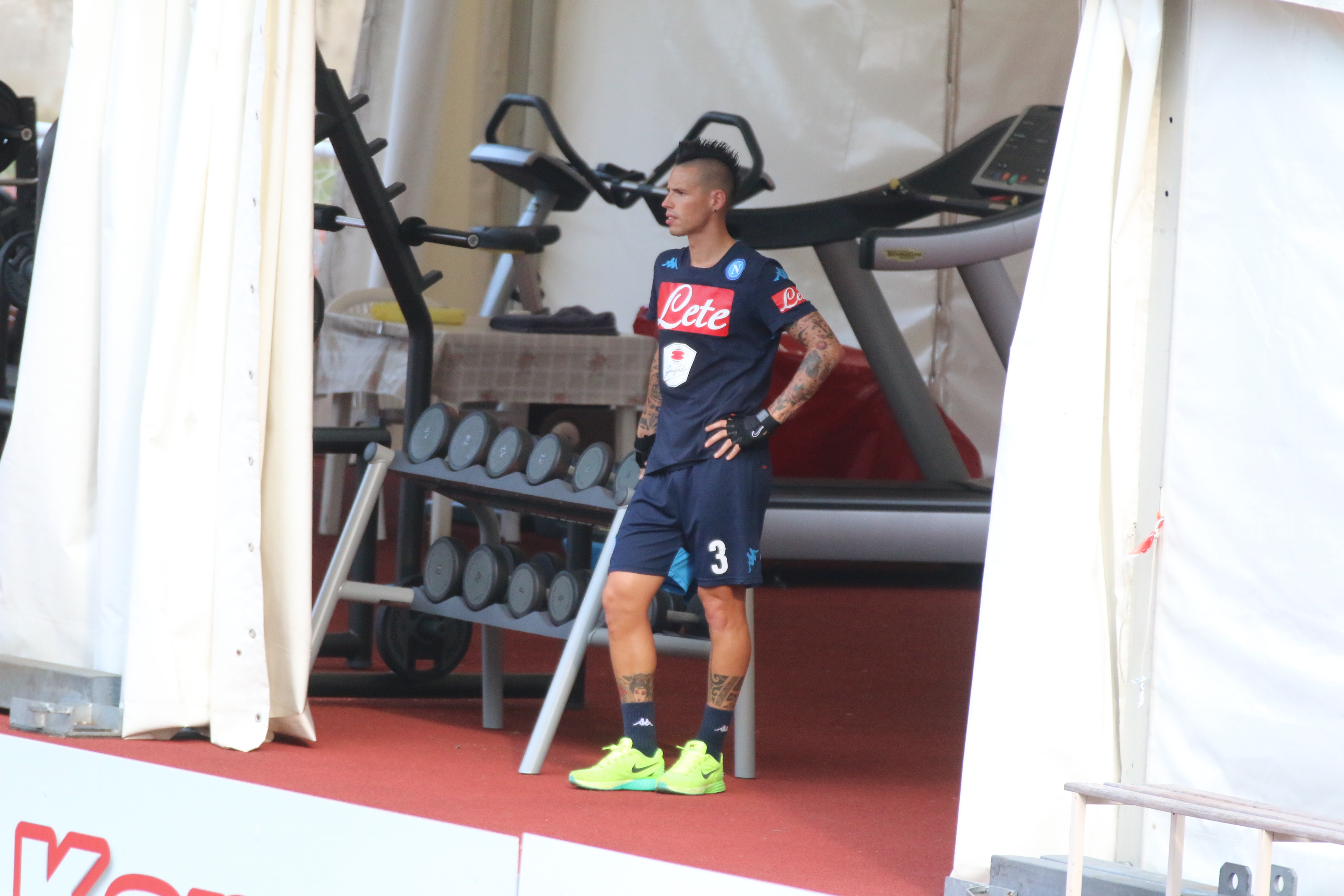 Al 31’ Applausi per il capitano Marek Hamsik che abbandona la palestra nella quale stava effettuando esercizi di risveglio muscolare.