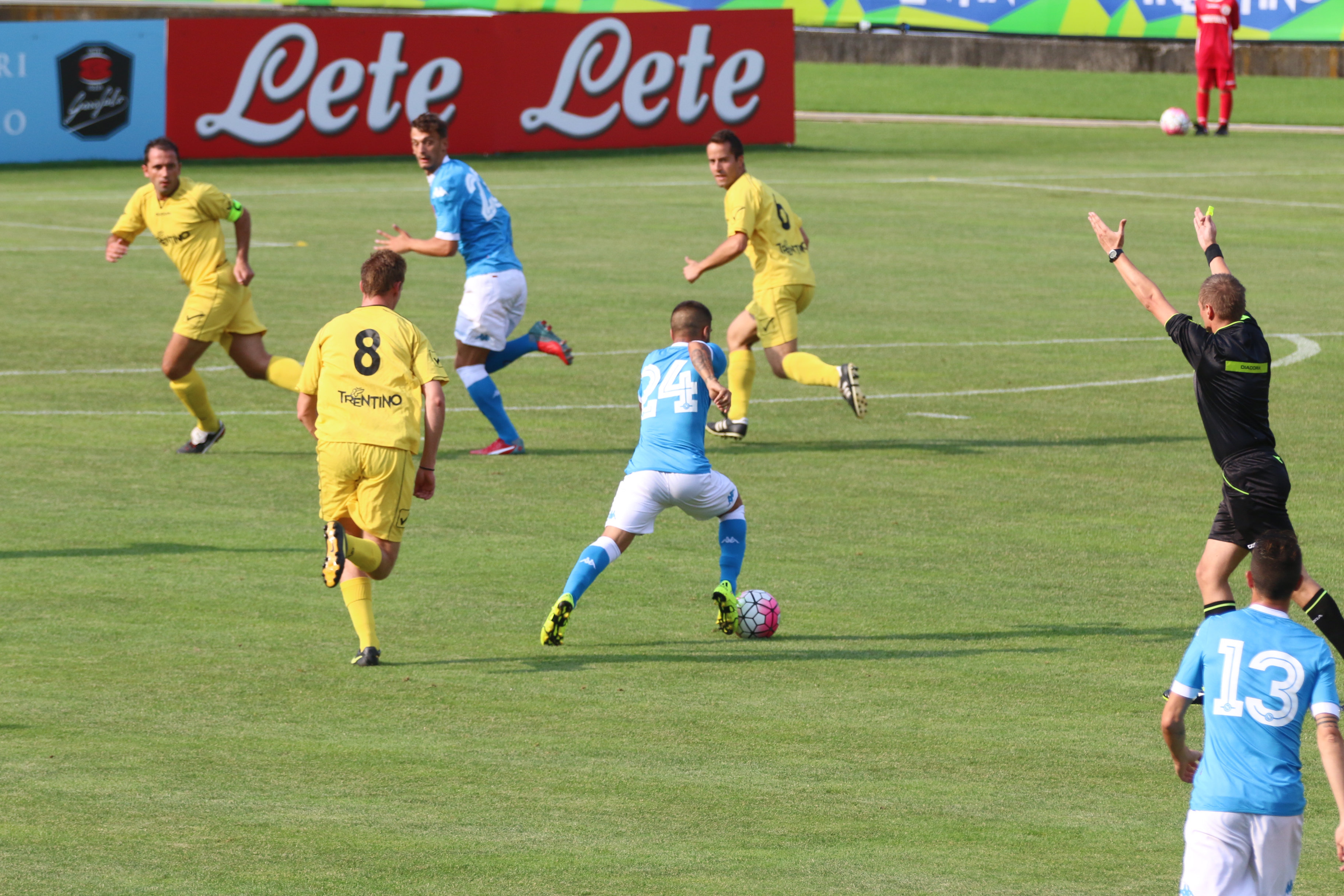 Al 16’ punizione per il napoli, tira Gabbiani, ma trova la sponda. Si cerca più determinazione nelle palle inattive. Dopo un minuti tre cambi per il Napoli: entra Romano per Inler, Allegra per Maggio e Bifulco per Gabbiadini. Al 23’ cambi per la formazione trentina: De Aliprandini per De Petris, Bentivoglio per Pinamonti, Dallatorre per Tenni, Alabasini per Fiorazzo, Callegari per Fanti, Kikens per Mariotti Alessio e Pancheri per Panizza.