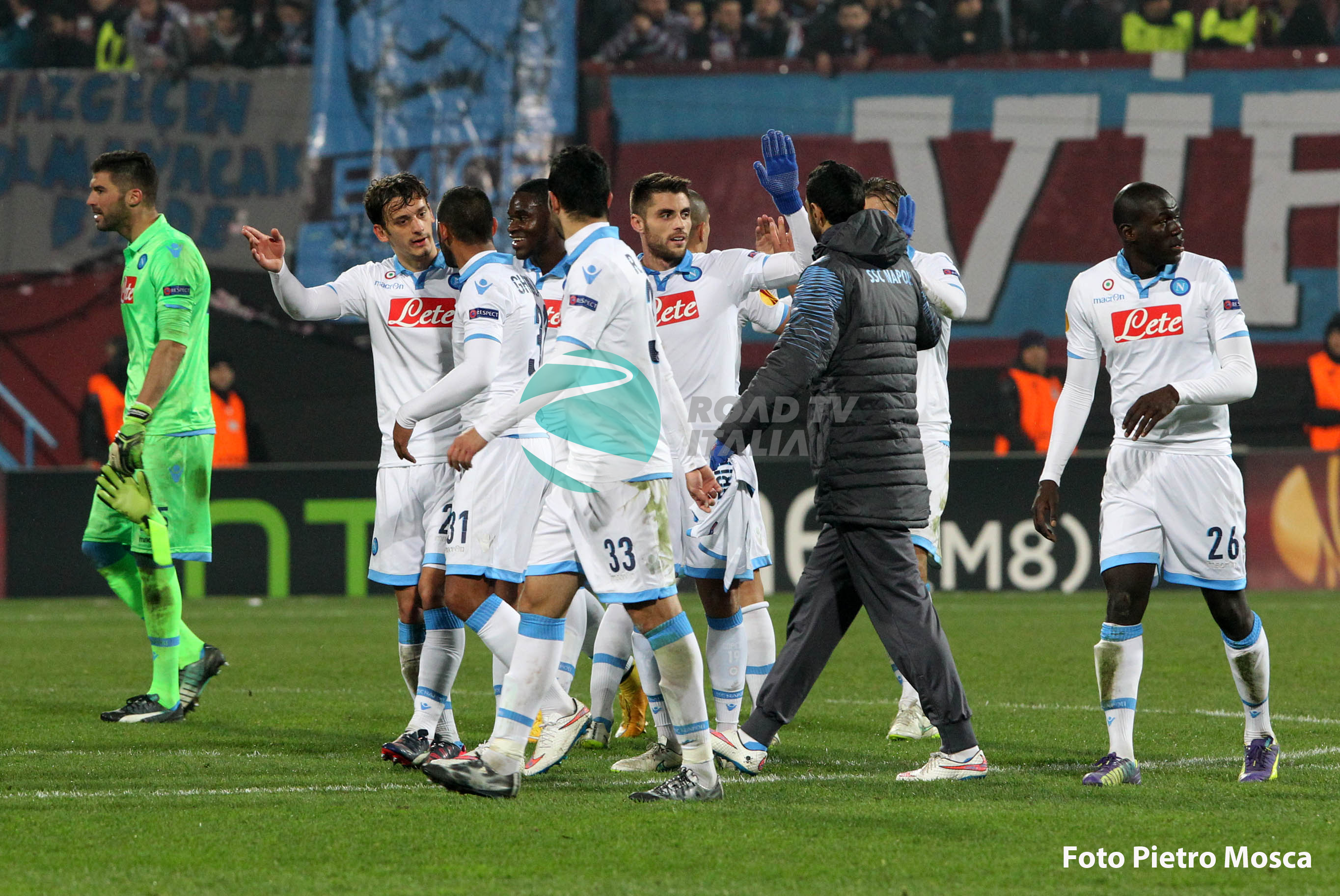 Nella ripresa gli azzurri controllano agevolmente il pallone. I turchi sono quasi mai pericolosi e l’unica emozione di parte Trabzon è al famoso minuto 61, quando i supporters locali inscenano i famosi festeggiamenti in ricordo della caduta dell’Impero di Trebisonda, ultimo avamposto bizantino in Oriente, nel 1461. Poi è un lungo incedere verso il fischio finale di un match senza storia che il Napoli può ammazzare definitivamente all’84° dagli undici metri con Mertens, che calcia però a lato, e che va in cassaforte a tempo scaduto con il gol di Zapata, bravo a sfruttare un rimpallo su un tiro di Callejon.
