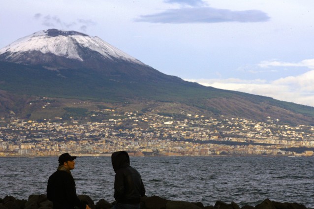 Napoli sotto zero e l’intera provincia stretta nella morsa del freddo. La leggera nevicata durante la notte ha ricoperto la città creando scenari inconsueti.