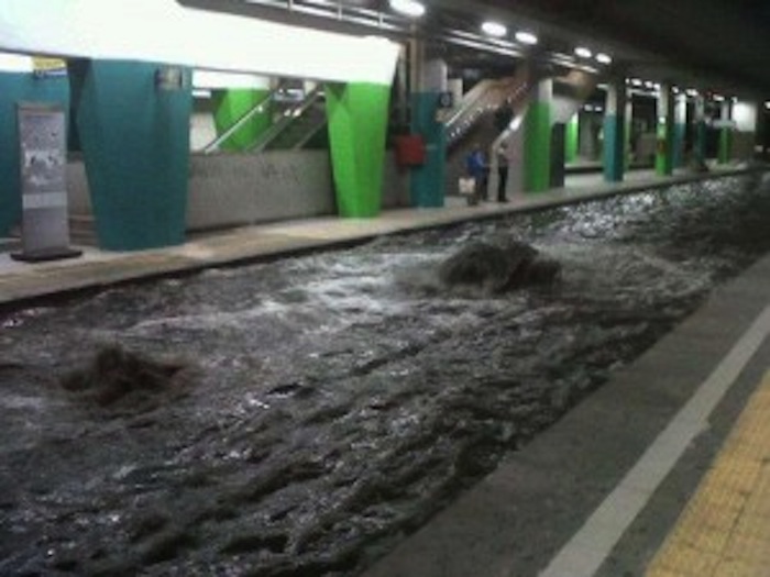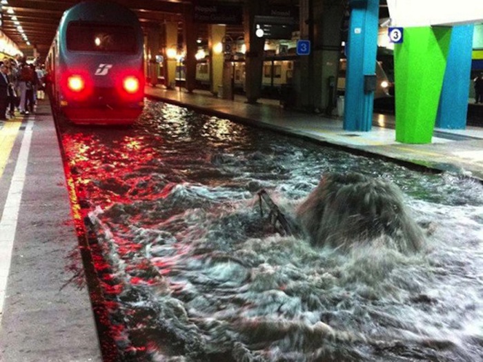 Come si può vedere dalla video-segnalazione inviataci da un nostro lettore, la pioggia cade copiosa all’interno della stazione Garibaldi della linea 1. Purtroppo la splendida architettura concepita da Dominique Perrault si è dimostrata sin dall’inizio poco “impermeabile”: non è la prima volta che la nuovissima stazione si allaga. Lo stesso vale anche per la stazione Garibaldi della linea 2, allo stesso modo messa in ginocchio dalla pioggia. Per allagamenti è rimasta chiusa anche la stazione Museo, che ora pare essere stata riaperta. Disagi anche a Chiaiano, e circolazione limitata sulla linea 1 alla tratta Piscinola – Università. Per quanto riguarda la linea 2 invece, Ferrovie dello Stato ha avvisato i suoi utenti su twitter della sospensione e poi della ripresa del servizio metropolitano, che sembra essere stata ripristinata circa mezz’ora fa.