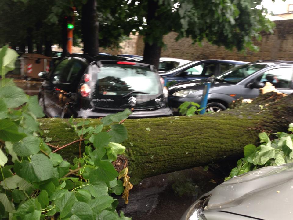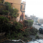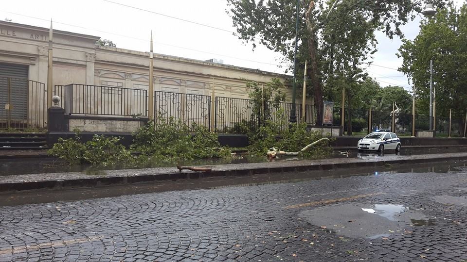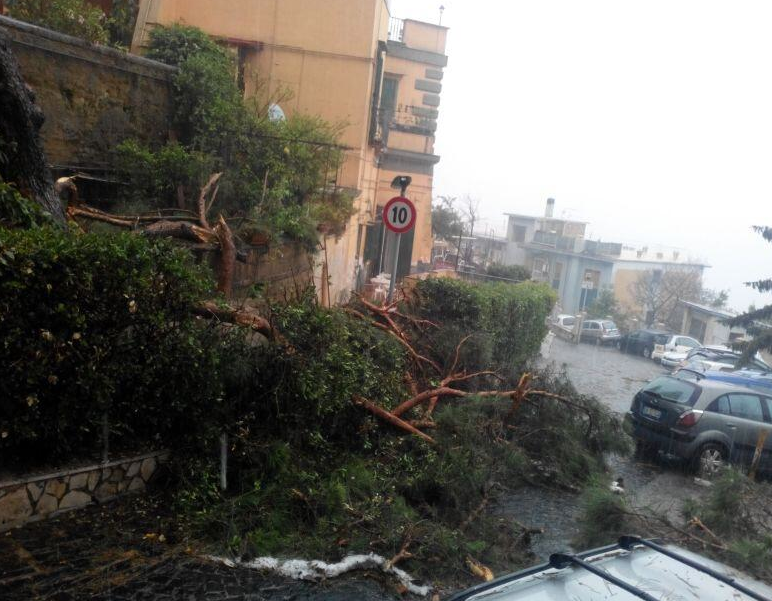 Ampio il bilancio degli alberi abbattuti dalla pioggia e dal forte vento. Alla riviera di Chiaia è stato visto un albero galleggiare nella strada ormai ridotta a una piscina (A BREVE IL VIDEO); un grosso albero è caduto a viale Kennedy, dove il fusto si è abbattuto come si può vedere dalle immagini, su alcune auto in sosta; un altro albero invece si è abbattuto sulle finestre di un’abitazione a piazza Carlo III e a via Nuova del Campo, zona Doganella, un grosso fusto è caduto travolgendo anche i cavi dell’alta tensione e rendendo necessaria la chiusura della strada. Un arbusto abbattuto anche a via Caracciolo, all’altezza della villa comunale, lato mare.