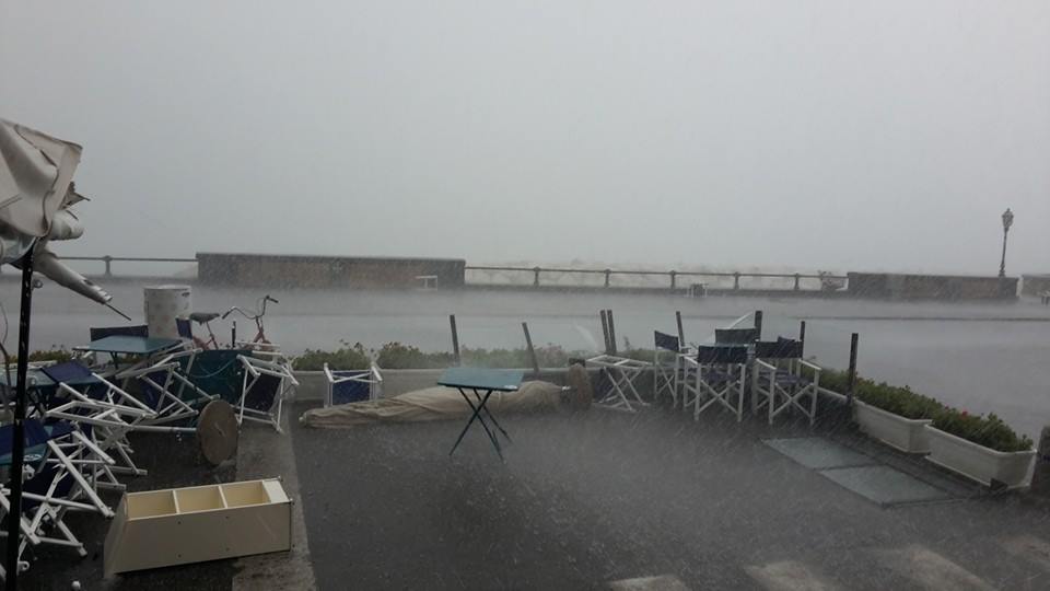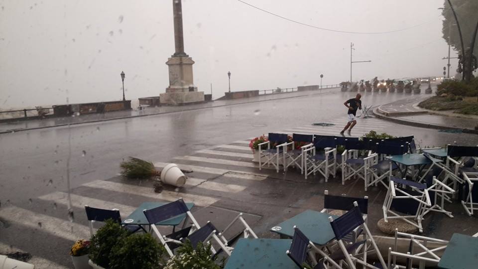 Prima il cielo si annuvola tutto, poi, quando scoppia la pioggia, si scatena l’inferno: un temporale di una violenza rara, come non si era forse mai visto prima, si è abbattuto e continua a flagellare in questi istanti la città di Napoli. Dopo la tromba d’aria vista ieri sul lungomare di Napoli, pare che oggi quello stesso ciclone si sia abbattuto proprio sul capoluogo campano.