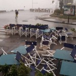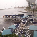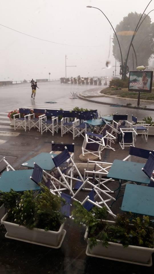 Tavolini e sedie che volano, ombrelloni e vasi con le piante che si accasciano al suolo nel fuggi fuggi generale: nelle foto i danni provocati dal nubifragio sul lungomare di via Caracciolo.