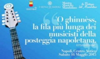 Il 16 maggio prossimo le vie del centro storico della città di Napoli si animeranno di musica e arte con ‘O Ghinnèss, la terza edizione della manifestazione musicale dedicata alla posteggia napoletana. In concomitanza col maggio dei monumenti musicisti, artisti della tammorra, posteggiatori, suonatori di mandolino, partiranno con un lungo corteo musicale itinerante da via San Giovanni Maggiore Pignatelli 5 alla volta di . tappa finale della manifestazione, che toccherà diversi punti del centro storico partenopeo, come Via Benedetto Croce, piazza San Domenico Maggiore, via San Gregorio Armeno e via San Pietro a Majella. Il nome dell’evento, O’ Ghinnèss, fa riferimento al record da battere, ovvero quello della fila più lunga di musicisti della posteggia, provenienti da tutto il mondo.