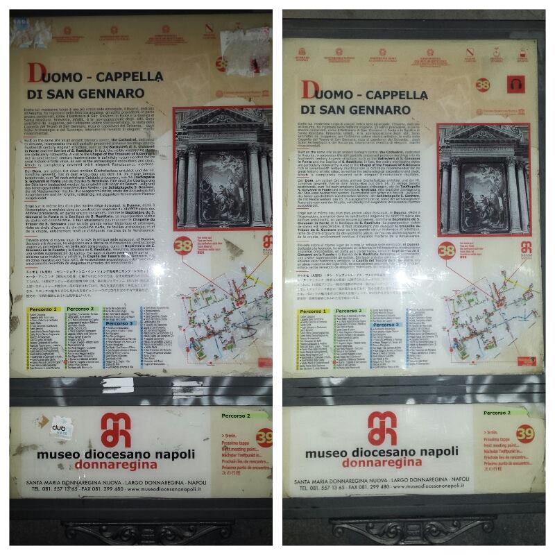I volontari hanno ripulito le bacheche informative del Centro Storico che ogni giorno vengono ricoperte di adesivi, scritte. Nonostante le ore di pulizia, nonostante i ragazzi non si siano risparmiati nel cercare di migliorare, ancora una volta, tutto ciò che circonda le bellezze del capoluogo campano, sulle bacheche restano comunque alcuni aloni, segni dell’inciviltà di chi sembra non tenere alla propria città. Grazie alla foto scattate dai volontari, prima e dopo il proprio lavoro, possiamo vedere il cambiamento, la luce che torna e il desiderio di rendere migliore una città che resta una delle più belle al mondo.