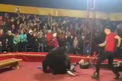 L’animale, che nelle immagini è in piedi sulle zampe posteriori e alle prese con una carriola, improvvisamente attacca il domatore e lo atterra. L’altra persona presente in pista prova ad intervenire e colpisce l’animale a calci. Intanto il pubblico terrorizzato, con molti bambini presenti, si rende conto della situazione e cerca la fuga. Secondo Gazeta.ru, l’animale si è lanciato verso gli spettatori ed è stato neutralizzato con l’ausilio di un dispositivo elettrico.