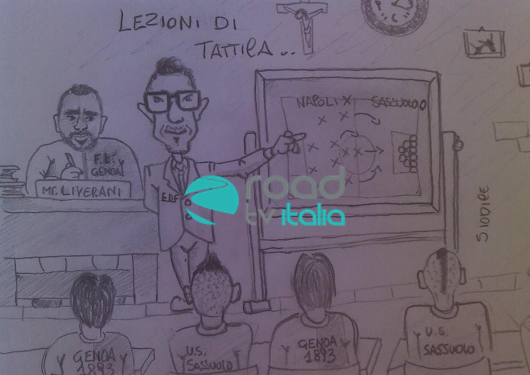 Vi proponiamo, in esclusiva, la vignetta del disegnatore Stefano Iodice che, dopo la gara interna al San Paolo e in vista del match contro il Genova, ha voluto sottolineare la tattica difensiva del Sassuolo, con la speranza che non si ripeta anche quest’oggi.