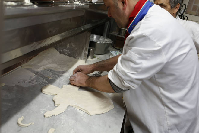 Per omaggiare Papa Francesco, per lasciargli un altro splendido ricordo della città di Napoli e del suo popolo, i pizzaioli Gaetano e Vincenzo Esposito e Salvatore Gamardella de “L’arte della pizza”, la nota pizzeria vomerese, hanno avuto l’idea di creare una pizza con le sembianze del Pontefice.