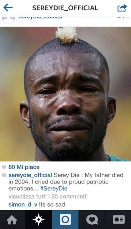 Da giorni il web è inondato dalle foto del calciatore Serey Die, centrocampista della Costa D’Avorio impegnato nei Mondiali, con il viso rigato dalle lacrime durante l’inno della sua squadra. La sua storia commovente ci è stata raccontata da mille giornali, il primo di questi il britannico DailyMail ci parlava di una tragica perdita. Pare infatti che il calciatore avesse ricevuto la notizia della morte di suo padre solo due ore prima l’inizio della partita, poi persa, contro la Colombia. Ed è subito notizia e il calciatore diventa un eroe che lotta per il suo paese nonostante la sofferenza.