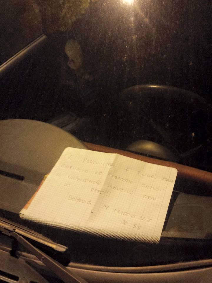 Domenica 17 maggio, alcuni cittadini, si sono visti costretti a lasciare un biglietto, visibile, all’interno della propria auto con la speranza di evitare multe che diventano sempre più salate. “Il parchimetro è fuori servizio, il giornalaio chiuso, non so dove fare il grattino. Ore 19.20“, questo è solo uno dei messaggi che hanno “arricchito” la sera di domenica 17 maggio.