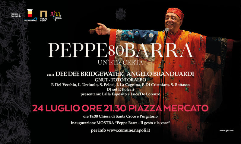Napoli festeggia il maestro Peppe Barra – mercoledì 24 luglio – uno dei suoi nobili “figli”, in occasione del suo 80esimo compleanno con un evento a Piazza Mercato, dal titolo “Peppe80Barra – Un’età certa”.