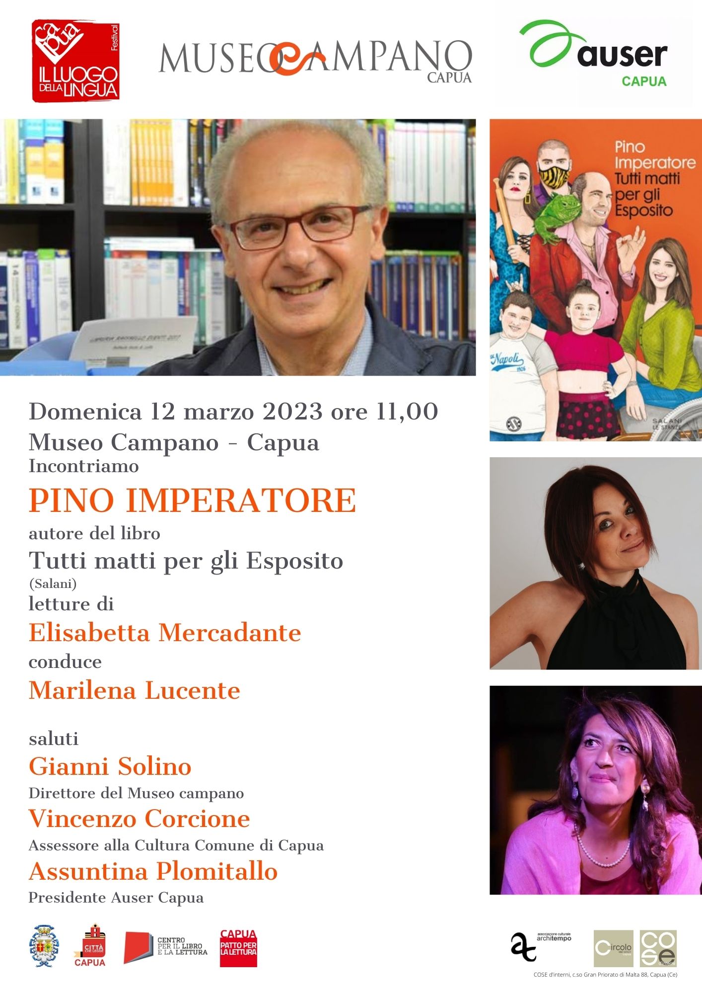Domenica 12 marzo alle ore 11.00 nella Sala Liani, il festival e il Museo campano in collaborazione con Auser Capua VitAttiva presentano l’incontro con lo scrittore Pino Imperatore autore di “Tutti matti per gli Esposito” (Salani).