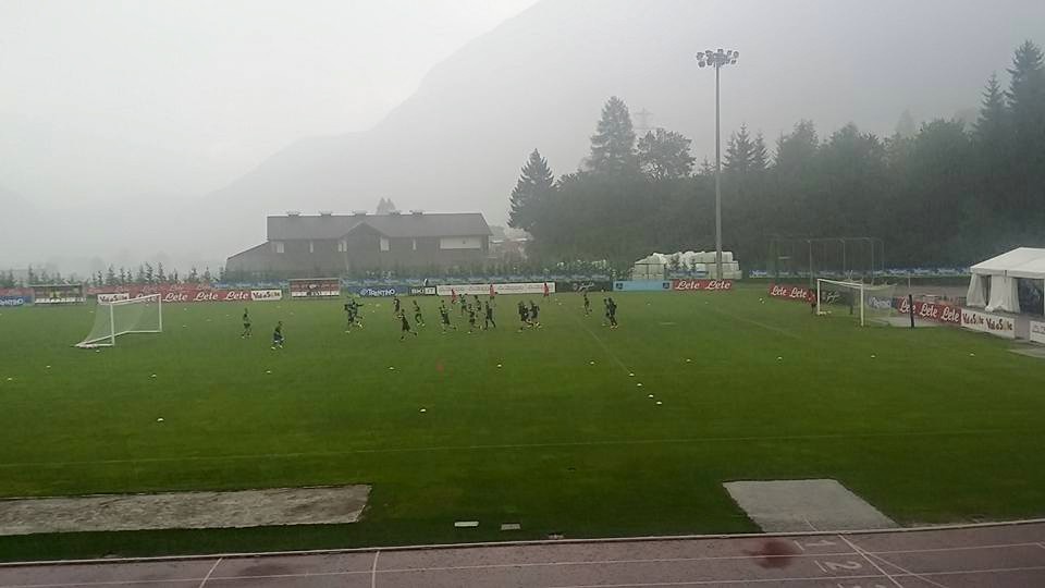 Le condizioni climatiche sono avverse alla seduta pomeridiana del decimo giorno di preparazione pre campionato partenopea. Mentre si attendeva l’ingresso in campo degli azzurri, una pioggia intensa e battente si è abbattuta sul campo di Carciato. L’intensità dell’improvvisa pioggia a Dimaro ha rinfrescato l’allenamento degli azzurri, per una quindicina di minuti, svolto sono sotto un vero e proprio diluvio.
