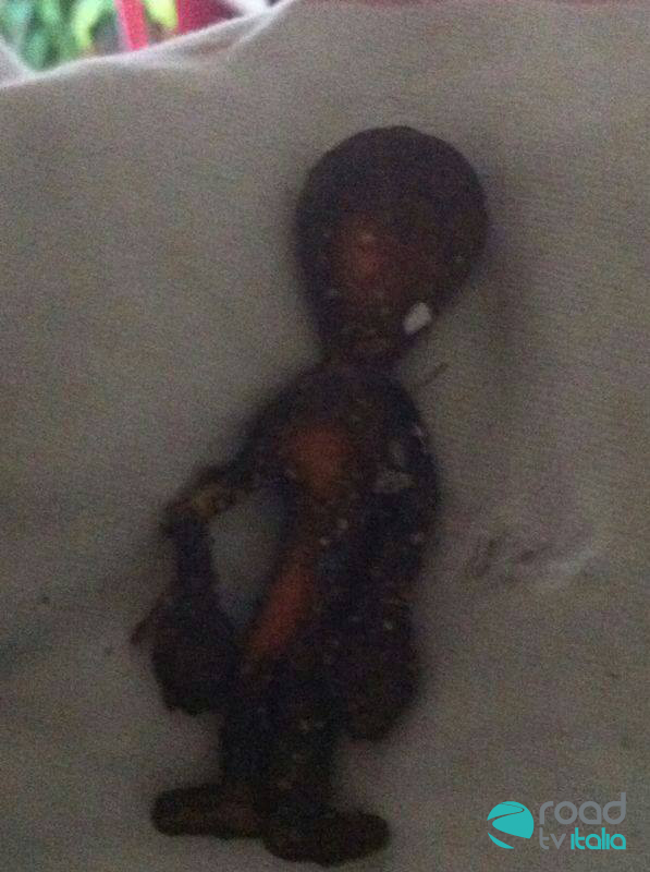 Durante le forti piogge delle scorse settimane sembra che su Napoli non sia caduta solo acqua. Grazie alla segnalazione di un nostro lettore, Roberto Rajola, vi proponiamo queste foto che mostrano un oggetto molto strano che durante gli acquazzoni è caduto sulla macchina che l’uomo stava guidando. Quello che ha tutta l’aria di essere un pupazzo molto rovinato ha lasciato perplesso a prima vista il nostro lettore, per la sua forma che ricorda molto un esserino alieno.