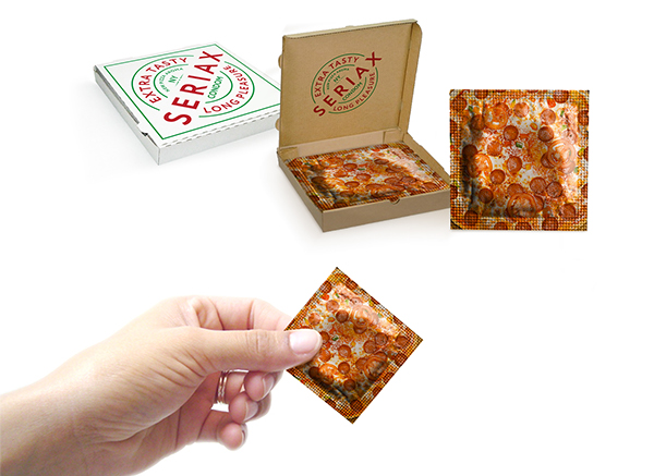 Questo sì che è proprio amore per la pizza: una giovane designer russa Marina Malygina, di Mosca, ha deciso di creare il pizza condom, un preservativo avvolto in una confezione a tema pizza napoletana. Sia le confezioni che la scatola che li contiene richiamano senza dubbio il prodotto gastronomico italiano più apprezzato nel mondo. Un modo simpatico e originale per unire cibo e sesso. L’idea, come dice la stessa creatrice del pizza condom, è venuta grazie ad Joey, uno dei più amati personaggi della serie tv americana F.R.I.E.N.D.S., che in una famosa puntata non riusciva a scegliere tra il cibo e il sesso. Marina Malygina ha provato a risolvere questo problema!