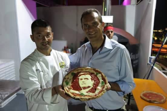 Com’era prevedibile il maestro pizzaiolo Errico Porzio sta con il suo stand registrando un autentico boom di visitatori. Curiosi, appassionati e buongustai hanno fotografato e si sono fatti fotografare con le pizze special che rappresentano il carattere distintivo della talentuosa vena creativa di Errico Porzio. Impazzano, così, curiosità ed interesse intorno alle pizze che ritraggono molti volti famosi. Tra questi la pizza con il volto del sindaco Luigi de Magistris che ha gradito tantissimo l’originale omaggio gastronomico ricevuto dal pizzaiolo, tanto da chiedere di portare via con sé la pizza sulla quale era ritratta la sua effige.