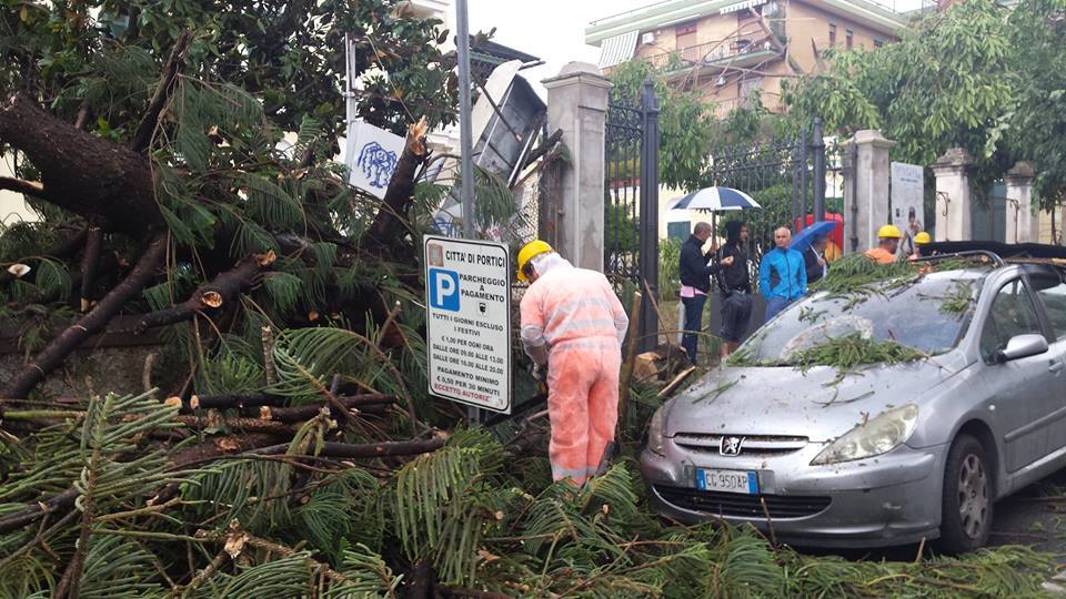 Una cittadina distrutta, completamente spazzata via dalla tromba d’aria che ieri si è abbattuta su Napoli e provincia con una violenza inaudita, provocando danni incalcolabili. Ma il comune più colpito è proprio quello di Portici, dove la violenza del nubifragio ha fatto più danni che nel resto della città e della provincia di Napoli. Un palazzo completamente sventrato, un ferito, un balcone crollato e alberi caduti ovunque.