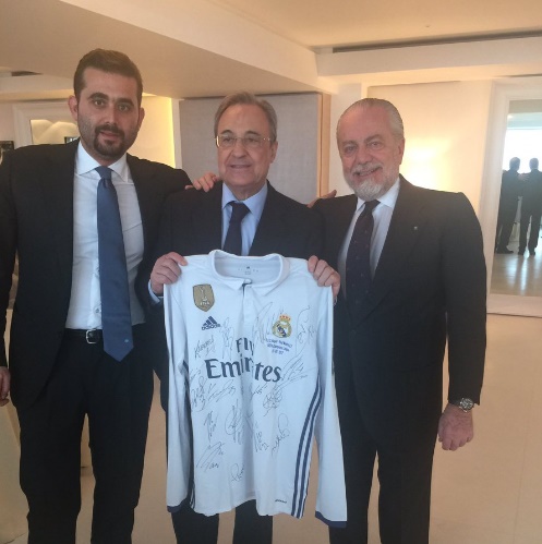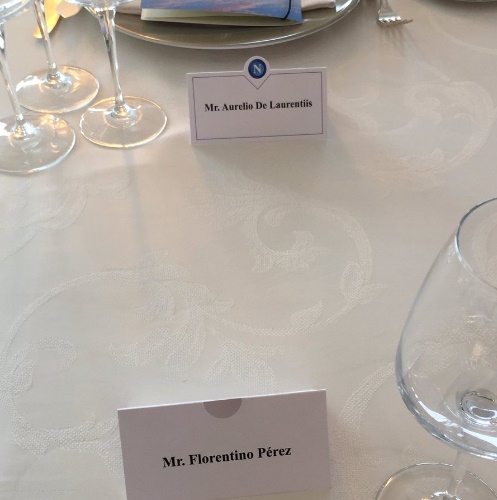 E’ in corso il pranzo tra le delegazioni di Napoli e Real Madrid all’Hotel Vesuvio. Come confermato dal profilo Twitter della società partenopea, attraverso delle fotografie, i due presidenti Aurelio De Laurentiis e Florentino Perez si sono incontrati per la tradizionale cerimonia prima della partita che questa sera vedrà i club sfidarsi per il passaggio ai Quarti di finale della Champions League.