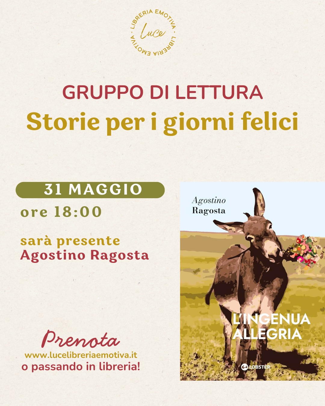 La casa editrice Martin Eden presenta L’ingenua allegria, il libro di Agostino Ragosta edito per la collana Lobster. L’evento si terrà sabato 31 maggio, a partire dalle 18:00, presso la Libreria Luce (Piazzetta Durante, 1, Vomero – Napoli).