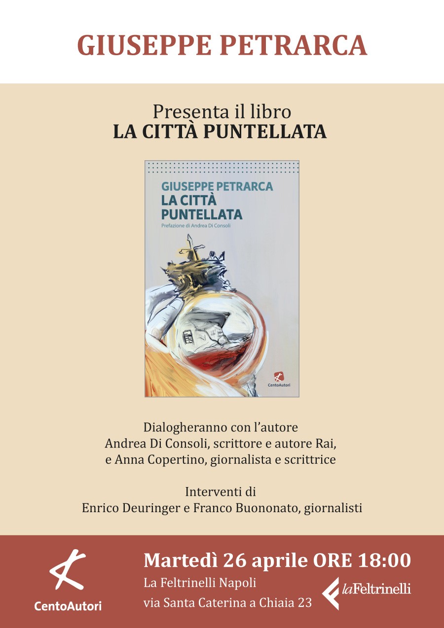 Martedì 26 aprile, alle ore 18.00, presso “La Feltrinelli”, in piazza dei Martiri, a Napoli, si terrà la presentazione del romanzo “La città puntellata” (Cento Autori) di Giuseppe Petrarca, in cui traspare una Napoli lacerata nel corpo e nella mente. Con l’autore interviene Andrea Di Consoli. Modera la giornalista Anna Copertino.