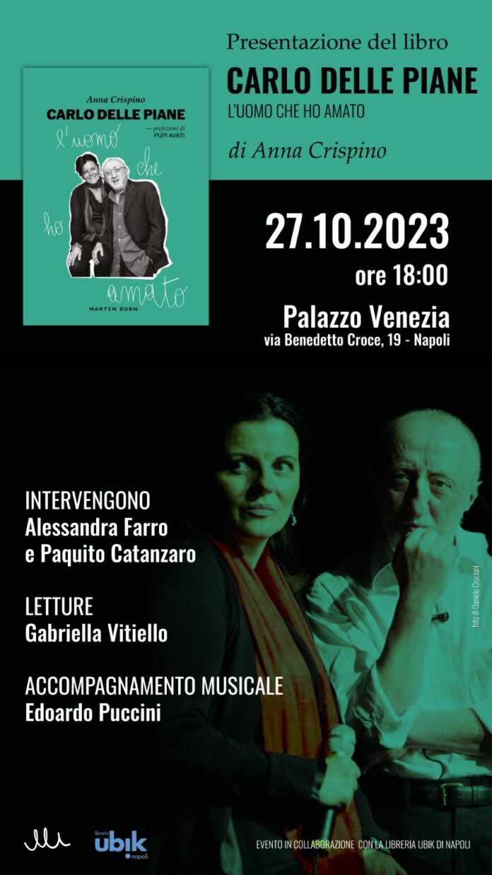 La casa editrice Martin Eden è lieta di invitare alla prima presentazione di Carlo Delle Piane, il memoir di Anna Crispino (collana Galassia Gutenberg). L’evento si terrà venerdì 27 ottobre (ore 18:00) presso Palazzo Venezia (via Benedetto Croce, 19 – Napoli).