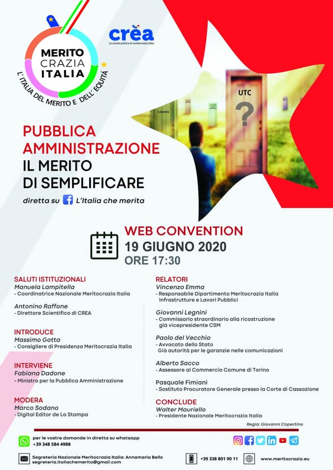 Appuntamento il 19 giugno 2020 dalle ore 17:30 sulla pagina Facebook di “L’Italia che Merita” (https://www.facebook.com/ilMeritoAlPopolo)