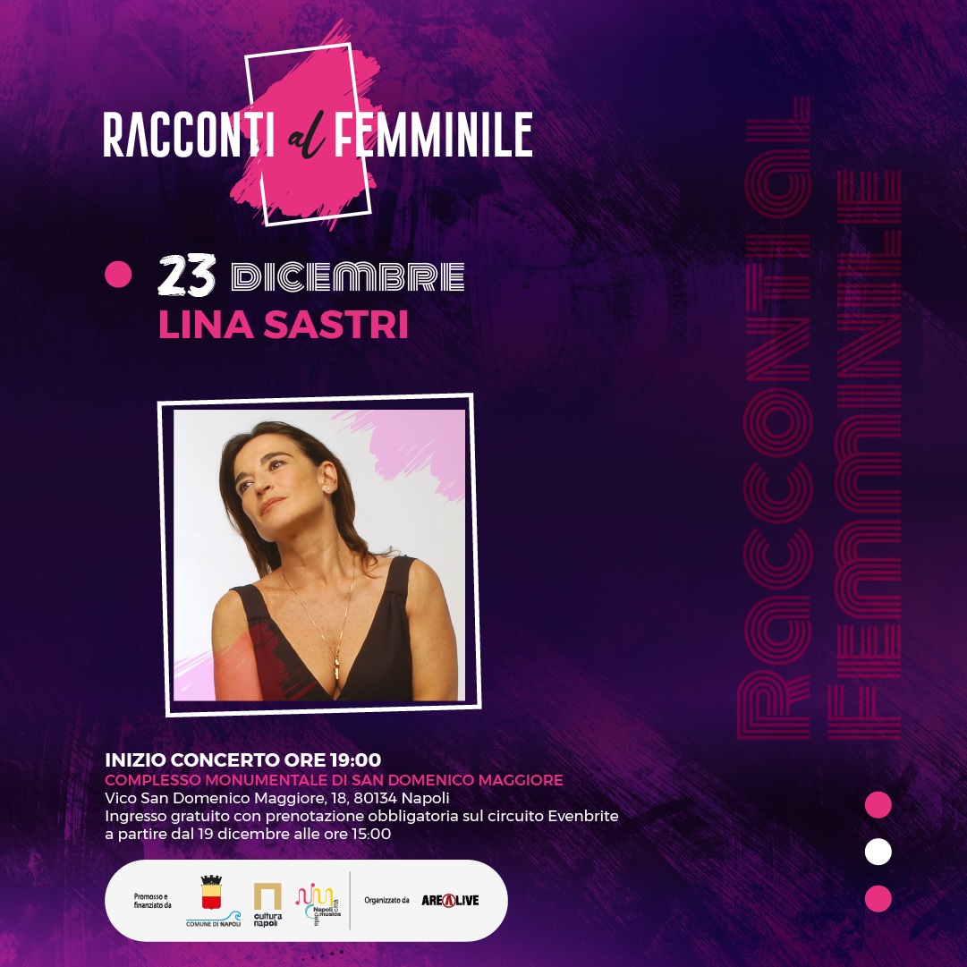 Dal 23 al 30 dicembre il Complesso Monumentale di San Domenico Maggiore a Napoli sarà il palcoscenico della seconda edizione di “Racconti al femminile”, una rassegna musicale – promossa e finanziata dal Comune e prodotta da AreaLive – u”nica nel suo genere, pensata per celebrare il talento, la forza e la sensibilità delle donne nel panorama musicale” come evidenziano i promotori in una nota.