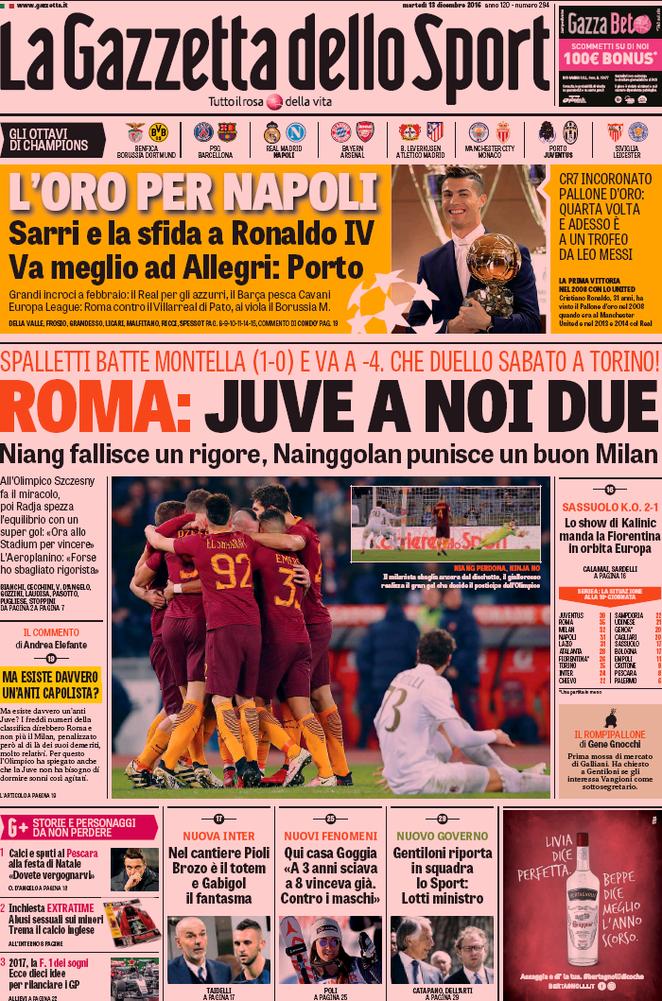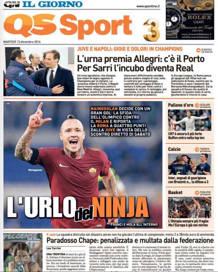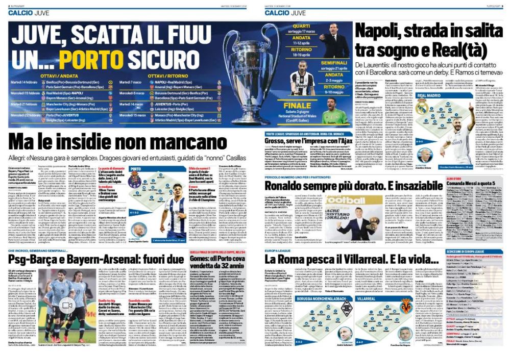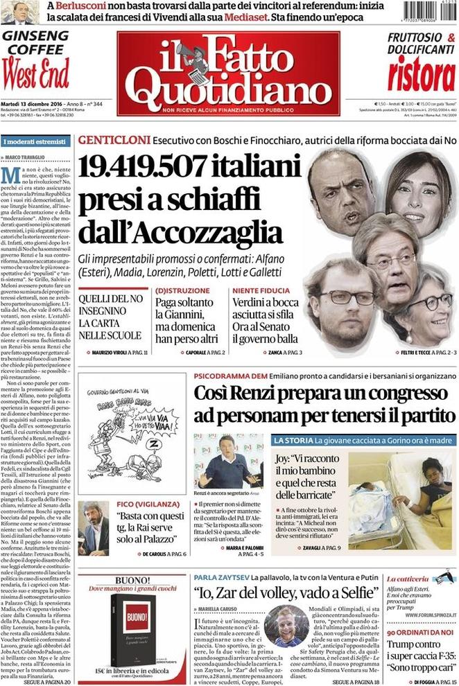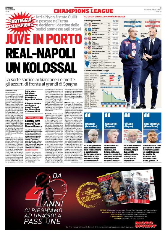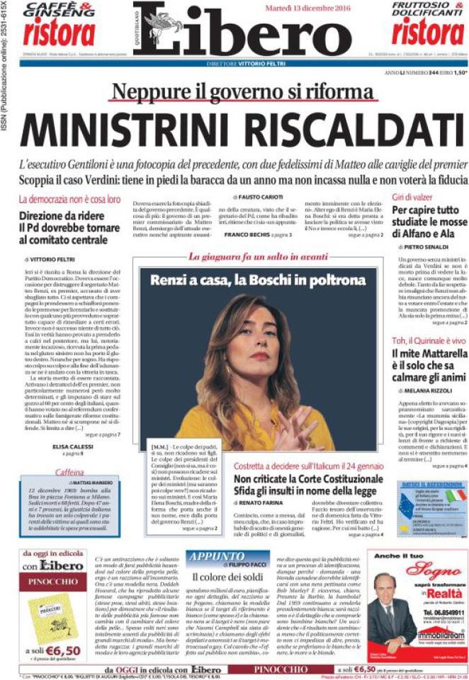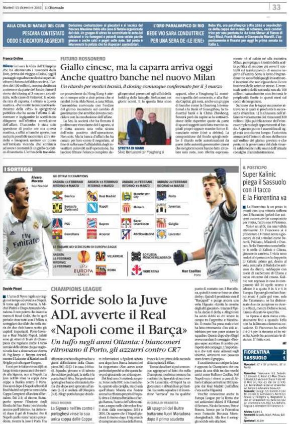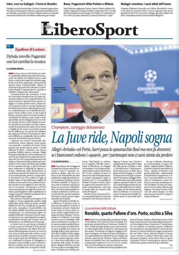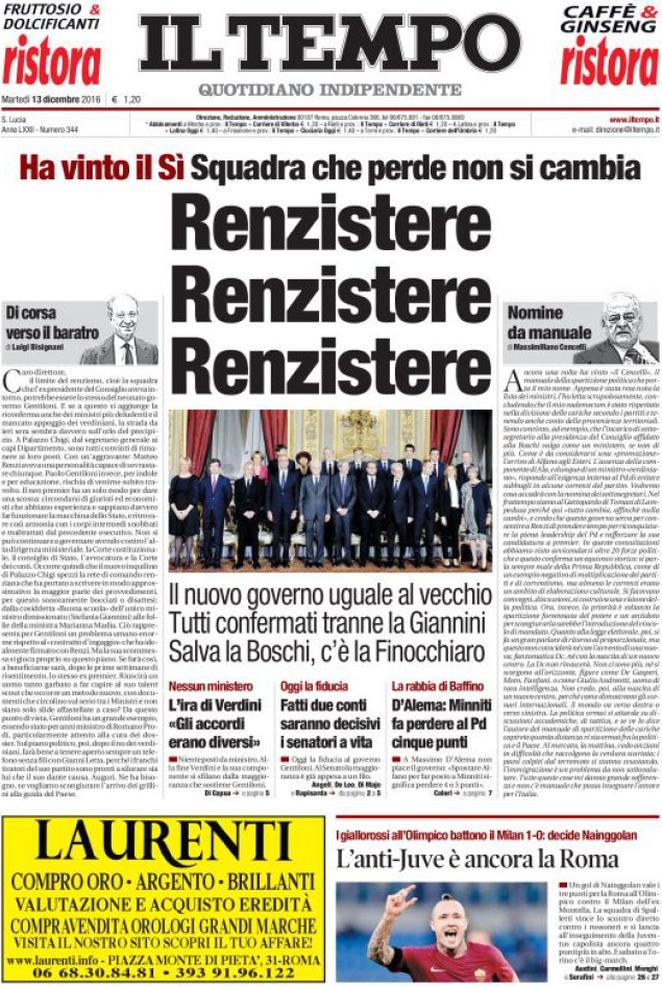 Ecco la rassegna stampa di tutte le prime pagine dei giornali di oggi, martedì 13 dicembre 2016. Al centro dell’attenzione il nuovo, ma non troppo, Governo Gentiloni e il sorteggio Champions che ha visto uscire dall’urna di Nyon Napoli-Real Madrid e Juventus-Porto.