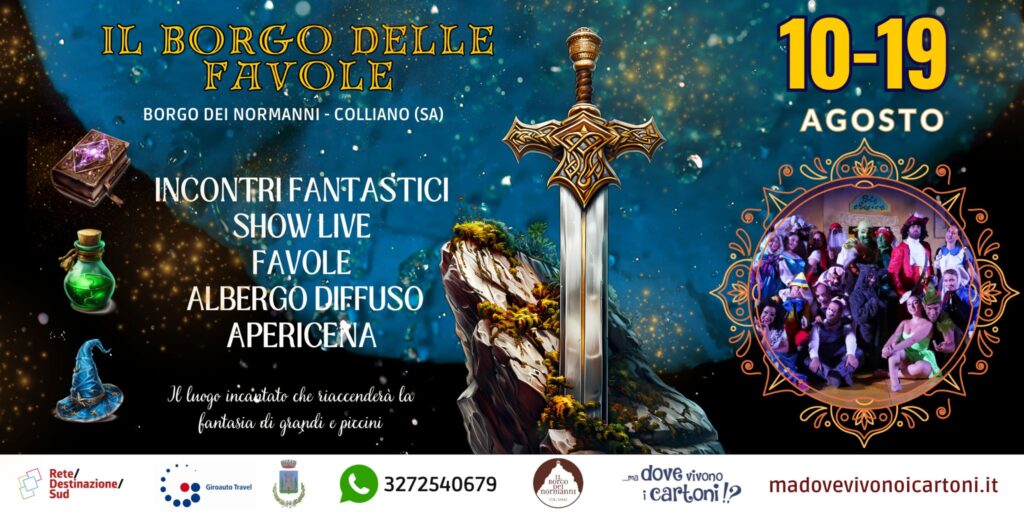Dal 10 al 19 agosto 2025, il Borgo dei Normanni di Colliano (SA) si trasforma in un vero e proprio paese delle meraviglie. Torna, per la sua sesta edizione, il “Borgo delle Favole”, un evento magico pensato per far sognare bambini, famiglie… e anche gli adulti che non hanno perso la voglia di stupirsi! Ma attenzione: non è solo un festival per sorridere. Attraverso le favole, quest’anno si parlerà anche di temi importanti, come i diritti delle donne e l’educazione all’affettività. Perché anche i sogni possono essere uno strumento potente per crescere con consapevolezza