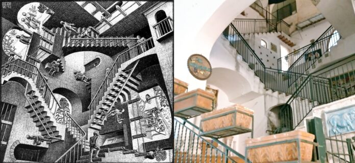 La Relatività, una tra le opere più rappresentative dell’artista olandese Maurits Cornelis Escher, potrebbe essere stata ispirata da un palazzo ad Amalfi.
