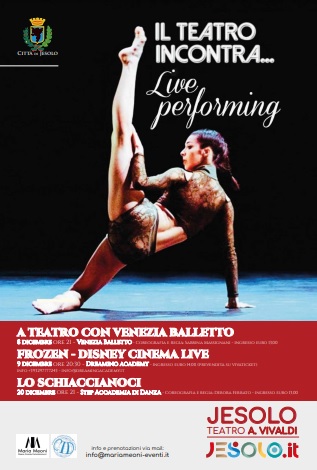 Il 2021 si concluderà il 20 dicembre con “Lo Schiaccianoci” con le coreografie e regia di Debora Ferrato per la Step Accademia Di Danza in scena al Teatro Vivaldi di Jesolo. Il 6 febbraio 2021 sarà la volta dello spettacolo “That’s Amore”, regia e coreografia di Marco Batti, per la compagnia del Balletto Di Siena. Il 6 marzo, invece, sarà la volta dello spettacolo “Free Dance” con la compagnia Kseij Dance Company, con la direzione artistica e le coreografie di Alekseij Canepa, Pablo Girolami e Jort Faber.