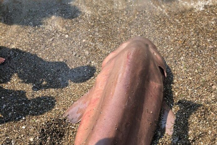 Ritrovato questa mattina sulla spiaggia di Sapri, in provincia di Salerno, uno squalo vacca, “Hexanchus”. Il grosso cetaceo è giunto già morto sulla spiaggia del lungomare, in pieno centro cittadino.