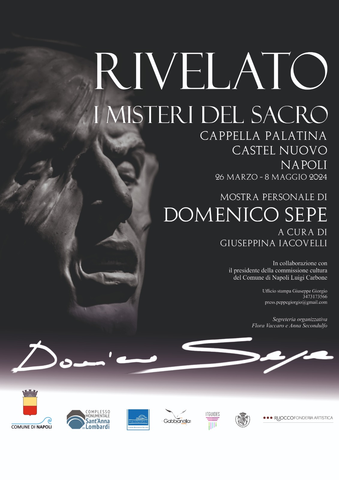 Il 26 marzo 2024 alle ore 11:00 anteprima stampa e presentazione e alle ore 18:00 inaugurazione e apertura al pubblico, presso la Cappella Palatina del Castel Nuovo di Napoli della mostra ‘Rivelato – I misteri del sacro’ del maestro Domenico Sepe.