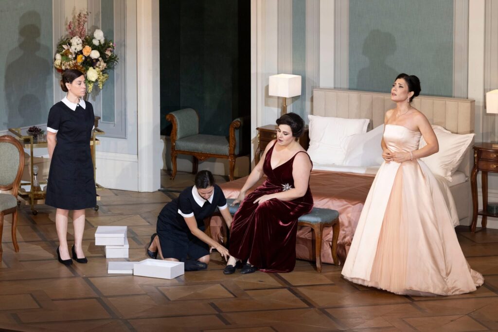 La regia di Jetske Mijnssen del “Roberto Devereux” di Gaetano Donizetti in scena in questi giorni al Teatro di San Carlo di Napoli, si muove sulla stessa cifra stilistica utilizzata anche per le due opere andate in scena nelle stagioni precedenti del trittico donizettiano dedicato ai Tudor, “Anna Bolena” e “Maria Stuarda”, rimarcando gli aspetti psicologici dei personaggi, soprattutto quelli femminili. Viene privilegiata la tessitura emozionale, claustrofobica e passionale dell’opera. Mi è sembrata una scelta quantomeno coerente, anche se là si può ritenere parziale, visto che è un tema centrale della narrazione. Spoglia, in buona parte, i personaggi dal ruolo, dall’esercizio del potere, e mette in risalto la loro umanità, il loro carattere e la lacerazione sentimentale dei loro conflitti amorosi.