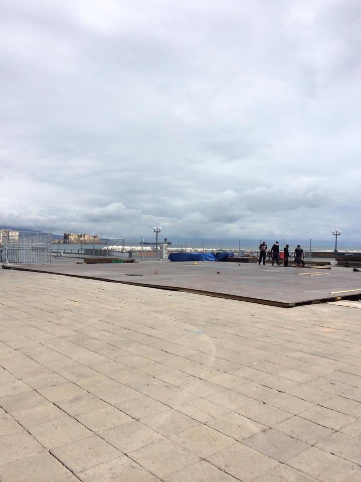 Ma lo scopo e la funzionalità della pedana restano ancora oscuri e misteriosi: qualcuno ipotizza che possa trattarsi della base su cui allestire il maxi schermo in occasione della finale di Coppa Italia che si terrà sabato prossimo e vedrà il Napoli contendersi il titolo con la Fiorentina, mentre l’autrice della denuncia ritiene che si tratti della base per la mini arena che ospiterà, da maggio a ottobre, tutti gli eventi promossi dall’amministrazione comunale, primo fra tutti il Festival dello Skate che si terrà dal 9 all’11 maggio (gli skaters avranno certamente bisogno di una pedana su cui esibirsi nelle loro acrobazie su tavola). Una struttura sicuramente necessaria, dopo il fallito tentativo da parte del sindaco Luigi De Magistris di tenere in piedi l’Arena del Tennis per ospitare i grandi eventi: ma installarla in totale spregio della pista ciclabile del Lungomare, Liberato dalle auto ma ora invaso da una pedana che ostacolerà, non si sa ancora per quanto tempo, il passaggio non solo delle biciclette, ma anche di eventuali mezzi motorizzati, a cui dovrebbe essere sempre garantito il transito in caso di interventi di emergenza, sembra una vera e propria contraddizione in termini.
