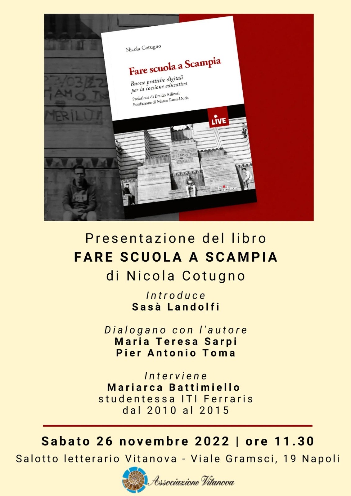 Sabato 26 novembre 2022 – Napoli – Salotto letterario Vitanova, presentazione del libro ‘Fare scuola a Scampia, Buone pratiche digitali per la coesione’ di Nicola Cotugno, Erickson Live.