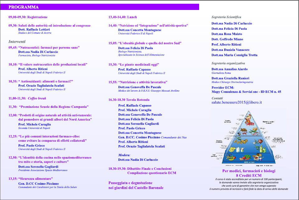 “Salute&Benessere”- Prevenzione delle Patologie Multifattoriali. Si terrà il 23 Aprile presso il Castello Baronale di Acerra il III Congresso di “Salute&Benessere” in merito alle patologie che provengono da fattori genetici e da fattori ambientali associati a quelli comportamentali quali la sana e corretta alimentazione, la giusta attività motoria e l’uso di tabacco.