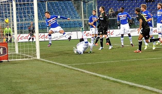 La Samp può riaprire, ma Pozzi tira male il rigore del possibile pareggio. E quando Brkic al ’23 fa una gran parate su una girata a volo bellissima ancora di Icardi a incrociare, per la Samp sembra quasi segno che non è proprio serata. L’Udinese non batte ciglio nella sua serata forse più positiva, con un paio di contropiedi guidoliniani del solito Di Natale che potrebbero anche valere il terzo goal. Samp compassata fino alla fine della partita, che si conclude con un secco e tutto sommato meritato 2-0.