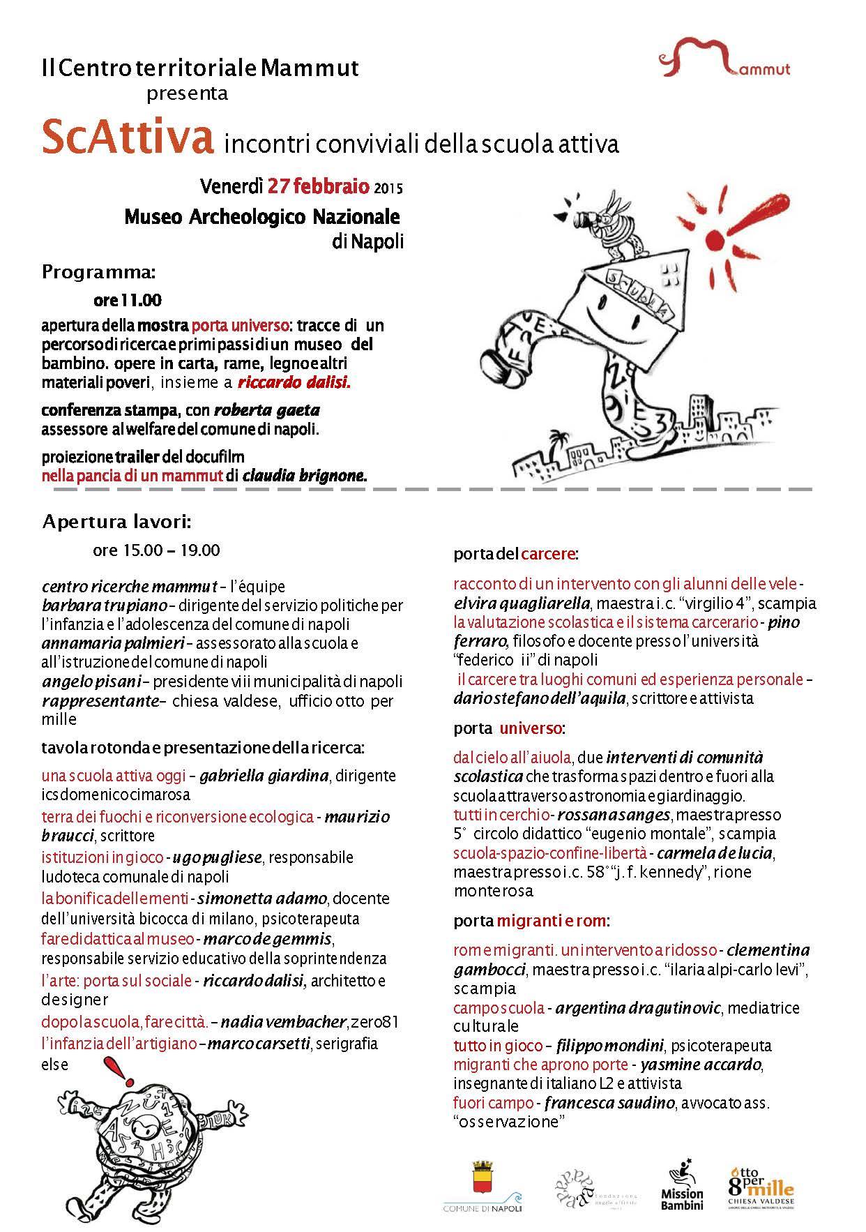 Il Centro territoriale Mammut di Scampia presenterà oggi l’evento ScAttiva – incontri conviviali della scuola attiva. L’evento si svolgerà alle ore 15,00, presso il Museo Archeologico Nazionale di Napoli Piazza Museo Nazionale n. 19. Preceduto da una conferenza stampa alle 11:00