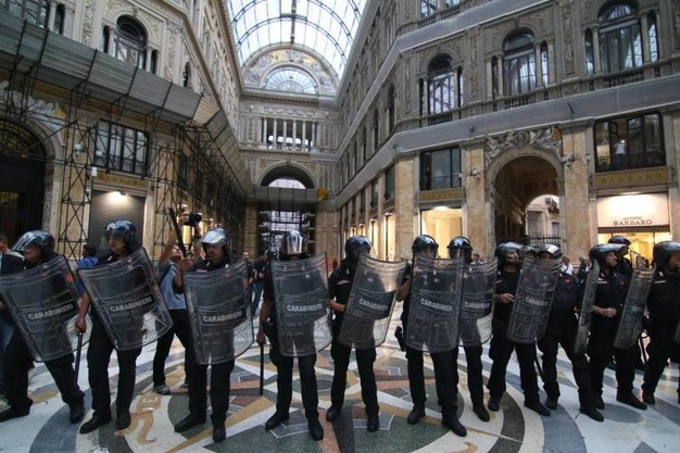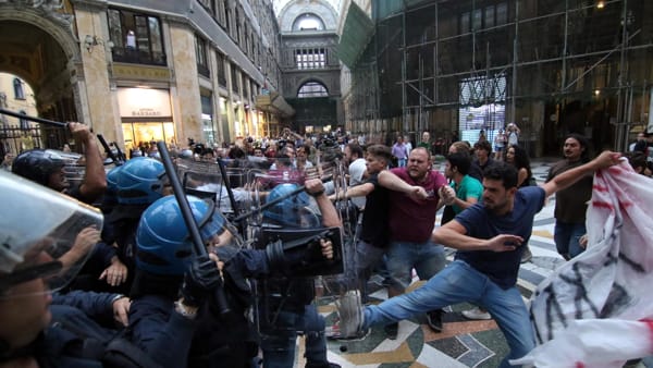 Gli scontri sono iniziati poco prima delle 19 dalla Galleria Umberto I. I manifestanti hanno sfondato poi un cordone della polizia su via Toledo, percorrendo via Chiaia e i vicoli adiacenti. Passando per i vicoli stessi che si intersecano coi quartieri spagnoli, i manifestanti facinorosi sono tornati in Galleria, dove hanno acceso un fumogeno. Non ci sono stati ulteriori scontri con le forze dell’ordine. Rimasta ferita anche la consigliera comunale della lista Dema, Eleonora Di Maio, esponente dell’area antagonista e presidente proprio della commissione consiliare che si deve occupare dell’urbanistica.