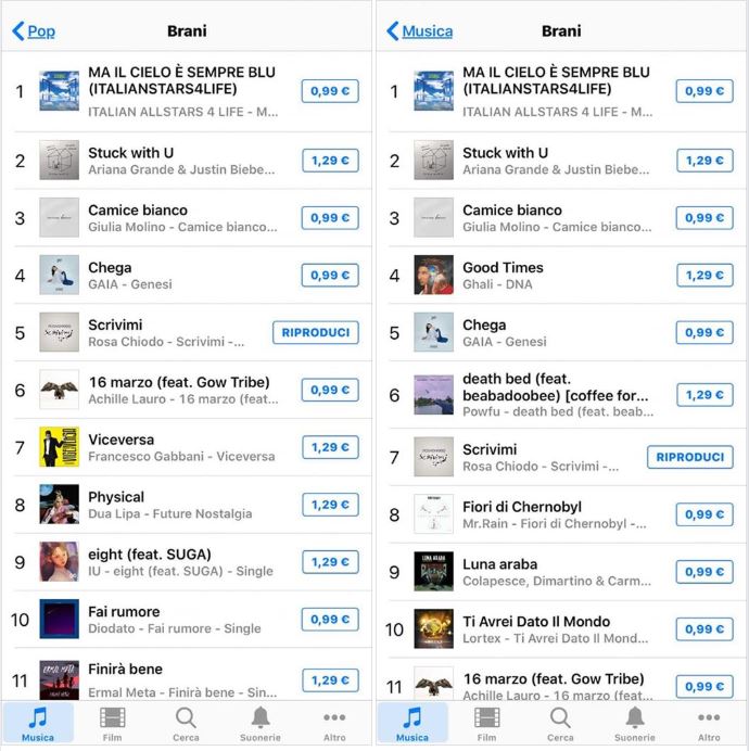 “Scrivimi”, la nuova cover interpretata da Rosa Chiodo, è in vetta nella top ten della classifica itunes dei singoli più venduti.