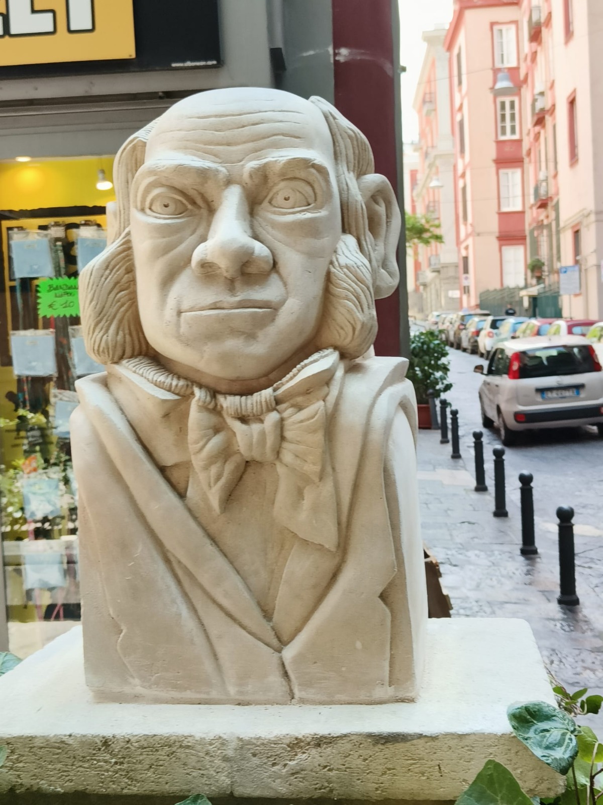 Il busto di Giaginto GIgante esposto fuori al "Vicoletto d'autore"